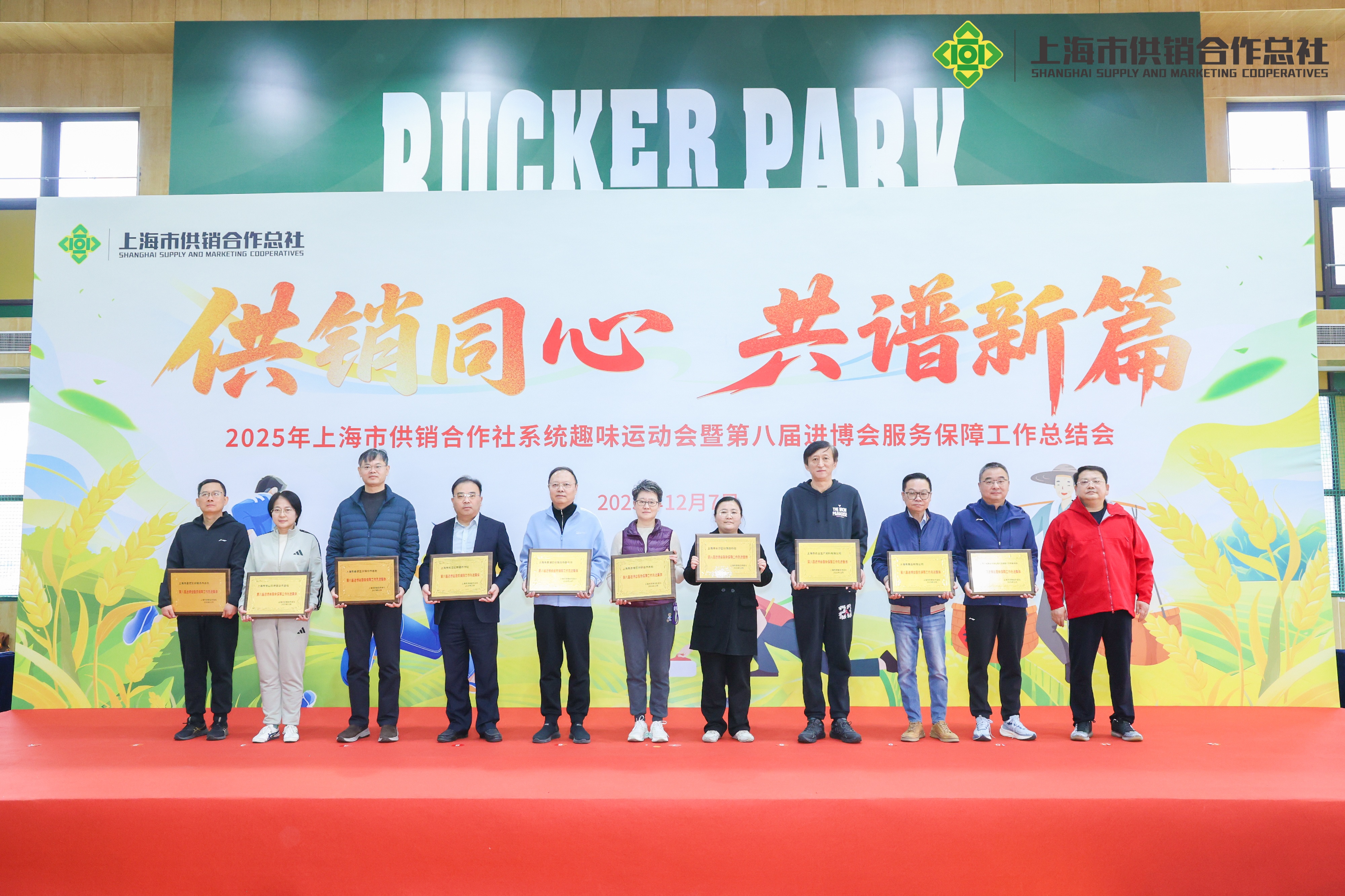 12月7日,“供销同心 共谱新篇”——2025年上海市供销合作社系统趣味运动会暨第八届进博会服务保障工作总结会圆满举行。宝山供销社代表队在党委书记、理事会会长、主任王心雄,党委副书记、纪委书记、工会主席归红华的带领下,精神抖擞、斗志昂扬,充分展现了宝山供销人团结协作、奋发有为的精神风貌。