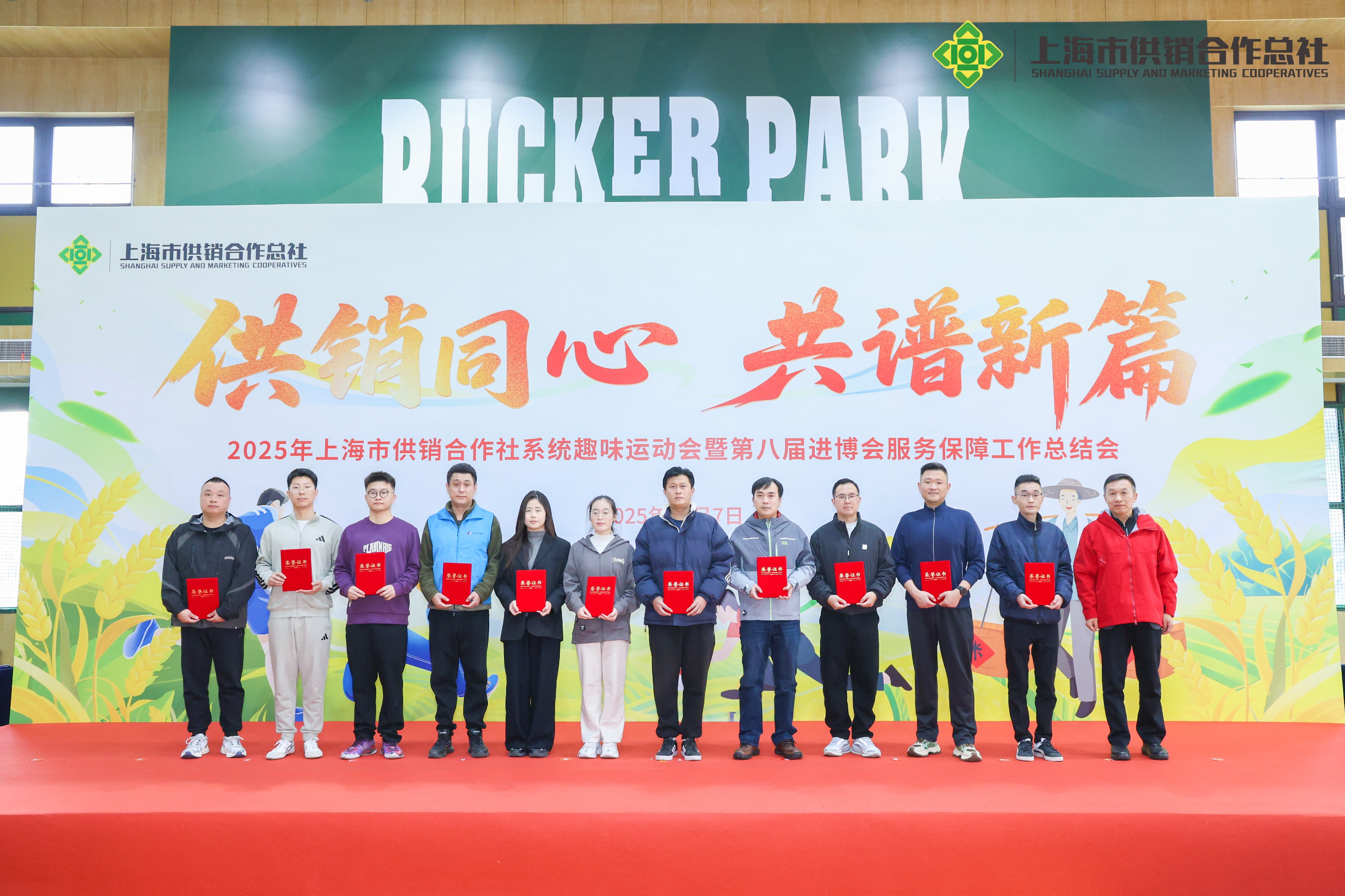 激烈角逐过后,活动迎来表彰环节。宝山供销社在近期进博会服务保障工作中表现突出,并在本次趣味运动会上彰显良好竞技水平,市社党委书记、理事会主任叶军平,监事会主席马晨辉为宝山供销社颁发“第八届进博会服务保障工作先进集体”“第八届进博会服务保障工作先进个人”及“2025年全系统趣味运动会一等奖”,这既是对宝山供销社进博会服务保障工作的充分认可,也是对全体员工团结协作、奋勇争先精神的高度肯定。