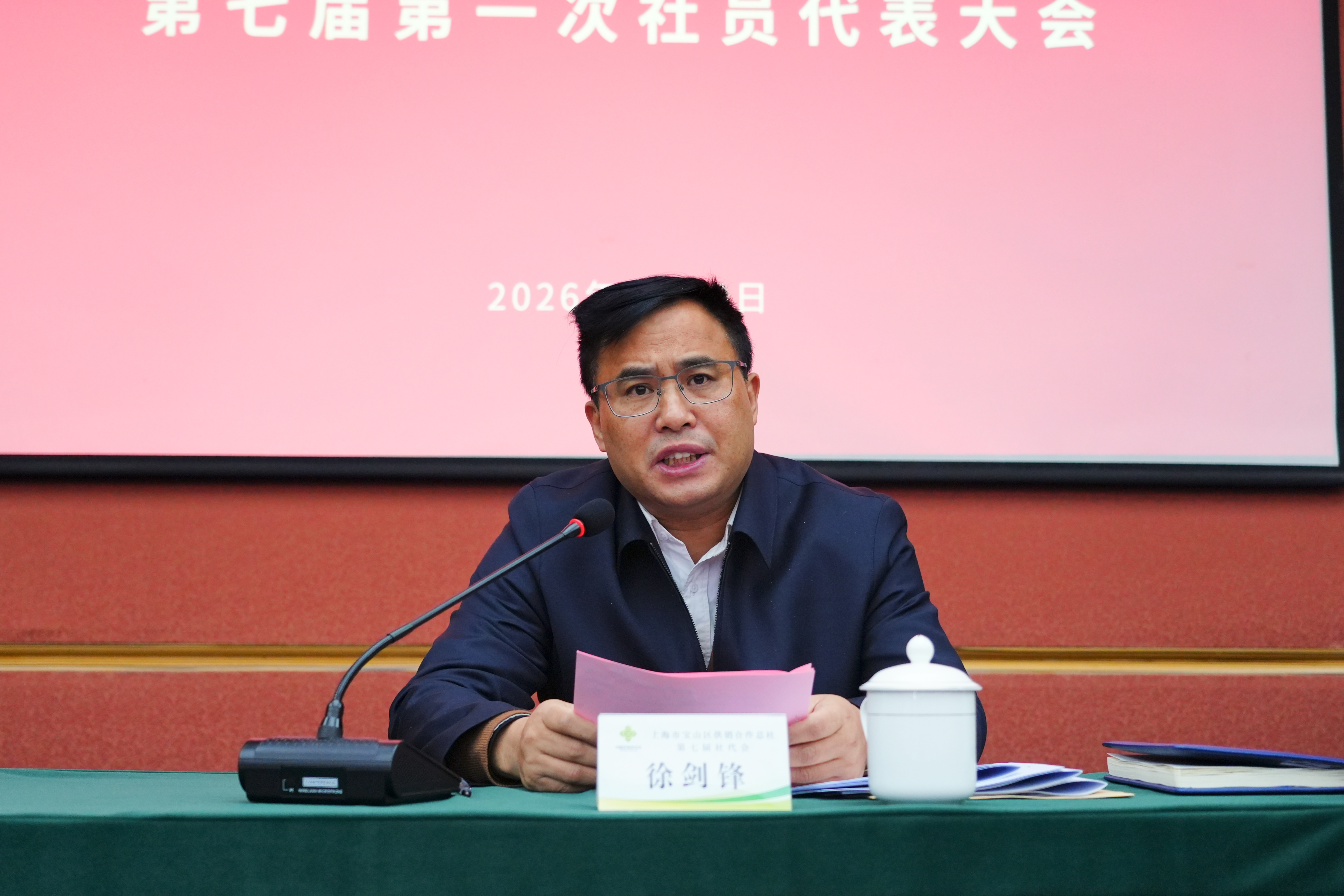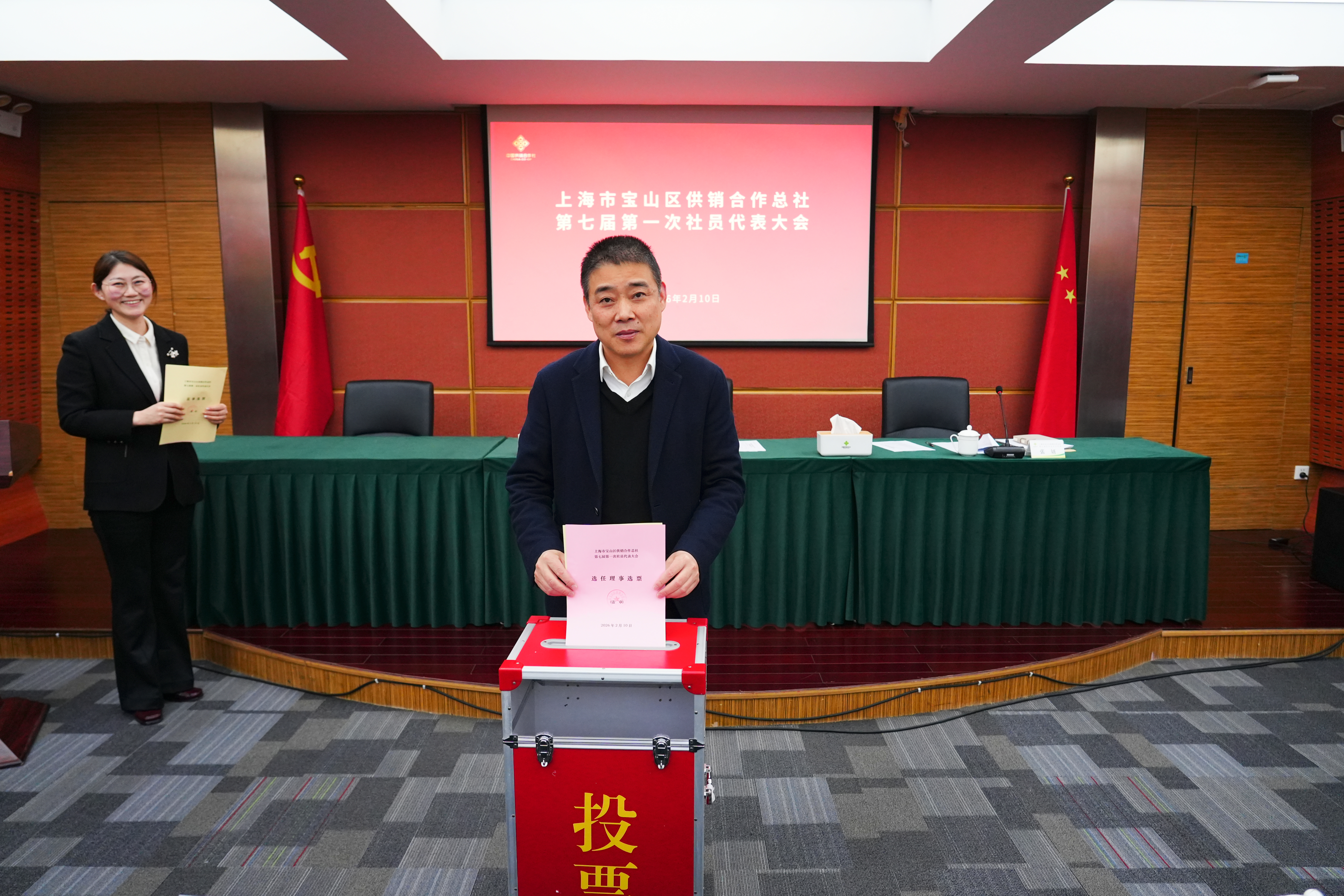 2月10日,宝山供销社第七届第一次社员代表大会在总部五楼会议室顺利召开。市总社理事会副主任徐剑锋,区国资委党委书记、主任胡文原,市总社合作指导部副部长周华应邀出席会议。宝山供销社党政班子,第七届社员代表及基层企业党政负责人共计55人参加。